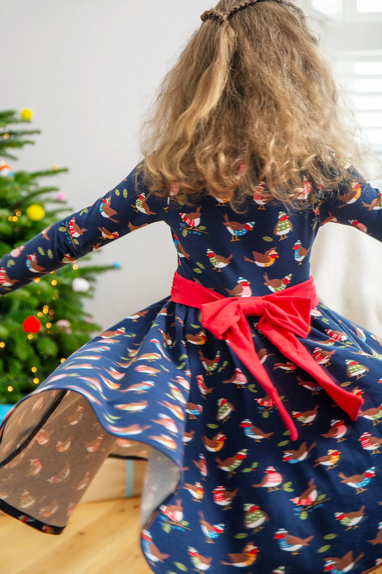 Sofia Skater Dress, Frugi (Indigo Robins)